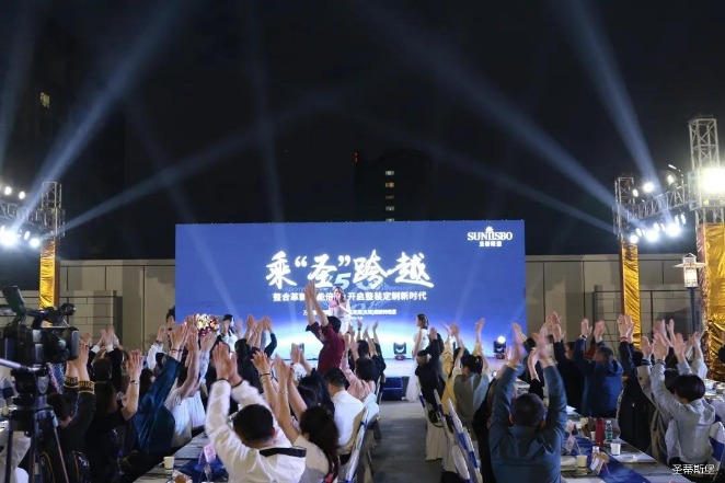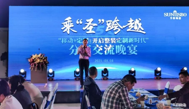 华灯璀璨的开场仪式,点燃了现场如火如荼的气氛。公海jcjc5500集团集团营销总经理陈玉伟先生对晚会进行了主题发言,他对2020年的营销工作进行了总结,并着重从营销工作部署、重点项目开展、产品整合、拎包帮扶、渠道运营和移动+定制整装优势等方面对2021年的营销工作做了全面的统筹规划。同时,他还讲解了“美国梦凯莎床垫”新品的产品工艺、市场优势、产品定位,使经销商对我们的新产品拥有更深入的认识和了解。